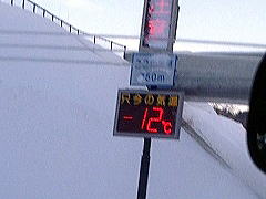 南会津にある「フィッシングあいづイワナ」へ向かう途中、電光掲示板に表示された気温はなんとマイナス12℃だった。どうりで外に出るだけで手が痛くなるわけである。