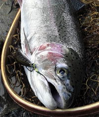 釣れたのは、50cmのワイルドレインボー。顔付きが丸く、小さいことからメスであることがわかった。しかし、その体は体高があり、ヒレも大きくカッコよかった。
