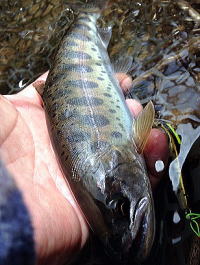 やや鱗が剥がれ、サクラマスのような風格を持つ本流ヤマメだ。美しさという点では、やはり劣るが、その力強さには敬意を表したい。ありがとう。