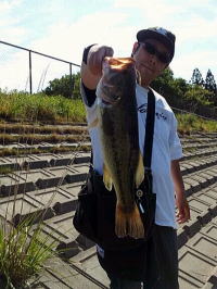 すると開始10分ほどで早速1人の先輩が40cm前後のバスをキャッチ!