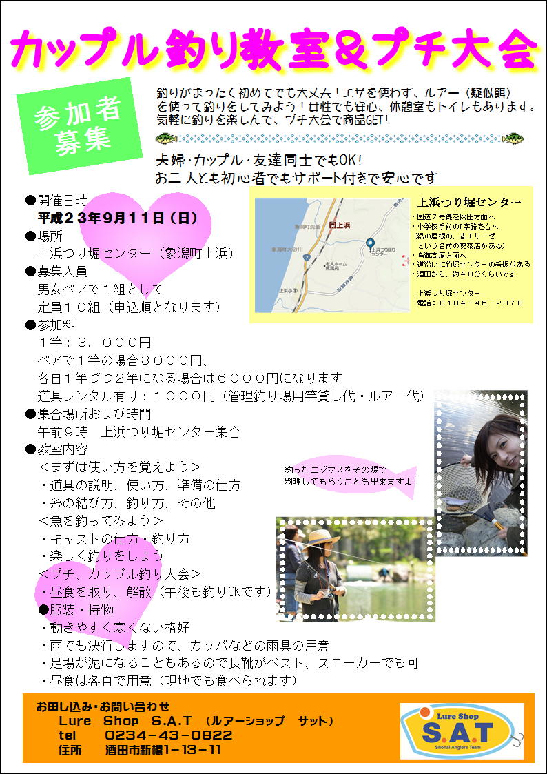 9月11日(日)Lure Shop S.A.T さん開催 ” カップル釣り教室&プチ大会 ”で、